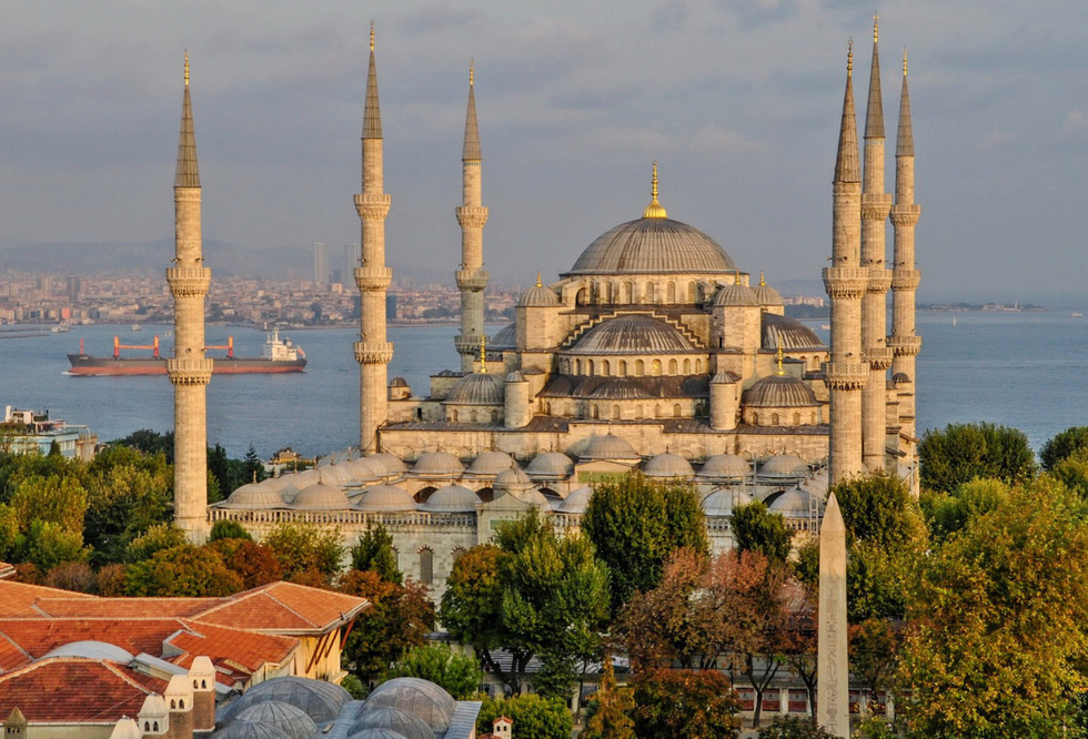 Nổi tiếng nhất ở Istanbul là Blue Mosque - thánh đường Hồi giáo xanh có 6 tháp sừng sững uy nghi, thể hiện quyền uy và sự giàu có của vua Ahmed 1 trong đế chế Ottoman hùng mạnh. Được đánh giá là một trong những công trình kiến trúc nguy nga nhất thế giới, Blue Mosque là kết hợp những nét tuyệt mỹ của 2 nền kiến trúc Hồi giáo Byzatine và Ottoman.