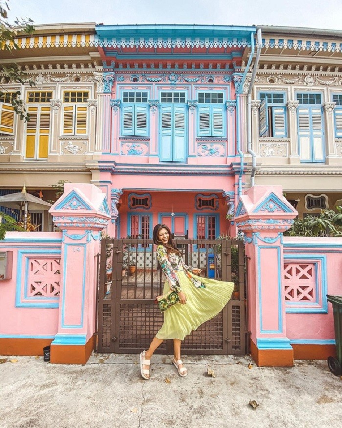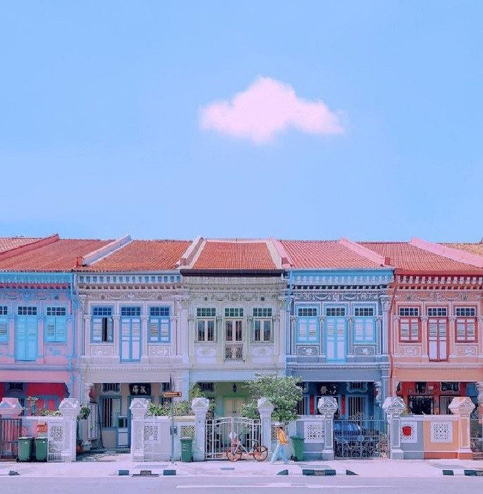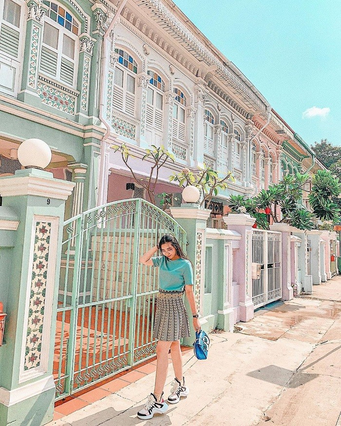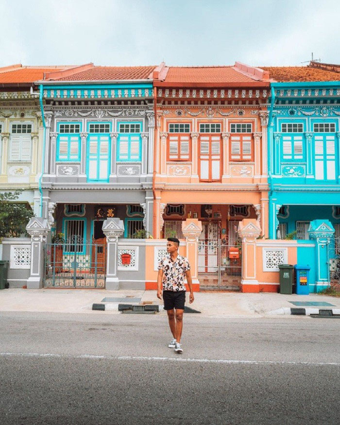 Koon Seng Road nổi bật với những ngôi nhà đầy màu sắc nối tiếp nhau được mệnh danh là 'khu phố cầu vồng', khiến các tín đồ Instagram check-in miệt mài khi du lịch Singapore.