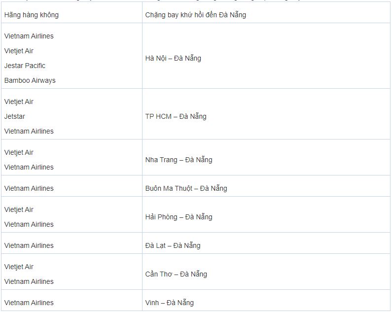 2. Một số chặng bay khứ hồi đến Đà Nẵng thông dụng