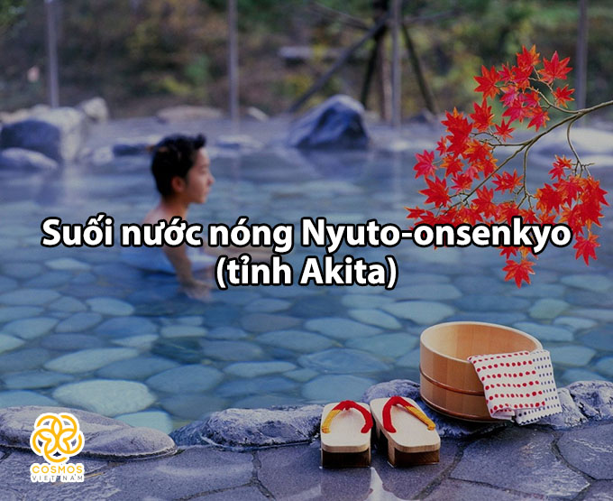 Suối nước nóng Nyuto-onsenkyo nằm dưới chân núi Nyuto thuộc tỉnh Akia phía Bắc Nhật Bản. Là một khu suối nước nóng nổi tiếng với rất nhiều hồ tắm lộ thiên. Nếu bạn đến đây đúng vào mùa lá phong thì bạn có thể vừa ngâm mình trong suối nước nóng, vừa được chiêm ngưỡng cảnh núi non xung quanh nhuộm màu đỏ hoặc vàng rực rỡ. Điều này nhất định sẽ trở thành một kỷ niệm đẹp, khó quên trong đời.