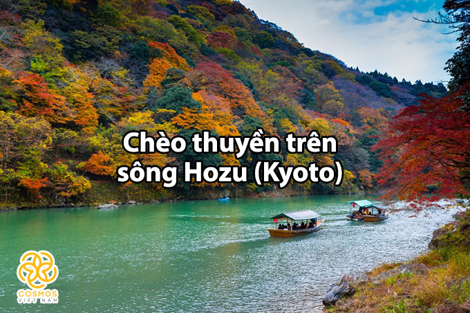 Sông Hozu là một con sông xinh đẹp nằm ở phía Tây Kyoto. Vào mùa lá đỏ, sẽ rất tuyệt vời khi ngồi trên chiếc thuyền nhỏ và cùng chèo thuyền xuôi dòng, vừa ngắm nhìn phong cảnh hữu tình của những chiếc lá phong đổi màu sẽ làm cho bạn có thêm nhiều trải nghiệm phong phú. Ngoài ra ở khu vực này còn có xe lửa chạy ngang qua, ngồi trên chiếc xe cổ kính chạy chầm chậm trong khung cảnh thiên nhiên hùng vĩ như chưa từng thay đổi từ xưa sẽ khơi dậy cảm giác hoài cổ trong bạn.