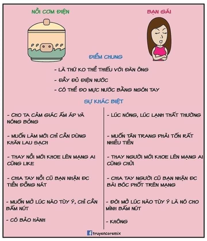 Anh chàng facebooker hóm hỉnh chia sẻ bức ảnh mà cư dân mạng chuyền tay nhau về sự giống nhau giữa con gái và chiếc nồi cơm điện. Ảnh: Đà Lạt Và Tôi.