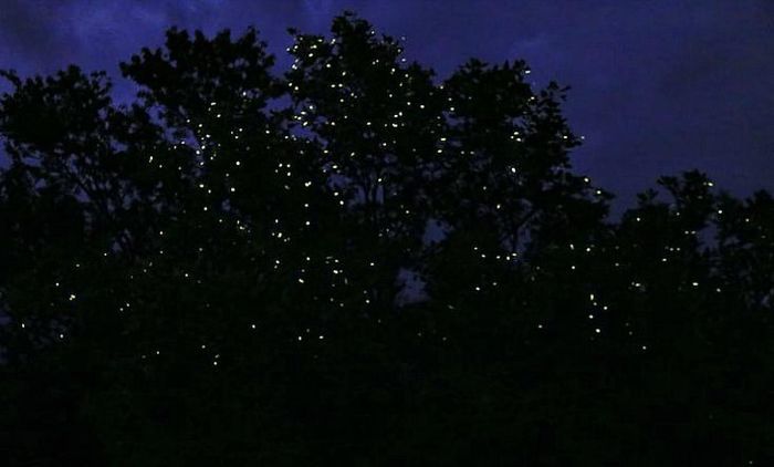 Khi ấy cả trăm ngàn con đom đóm tụ lại với nhau lấp lánh như những đốm lửa nhỏ xinh tạo nên một không gian mờ mờ ảo ảo. Ảnh: tintuc