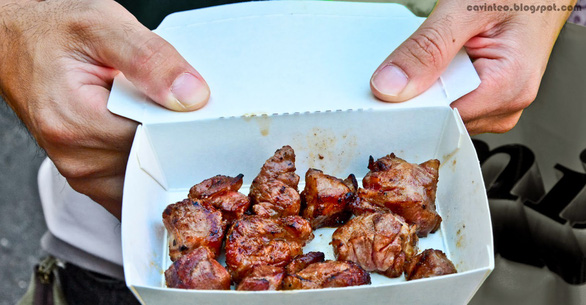 Món này là những miếng thịt bò nhỏ được nướng sẵn hoặc nướng tại chỗ khi khách mua. Món thịt bò nướng tuy đơn giản nhưng khá hấp dẫn, đặc biệt là khi bạn vừa ăn vừa đi dạo dọc đường phố.