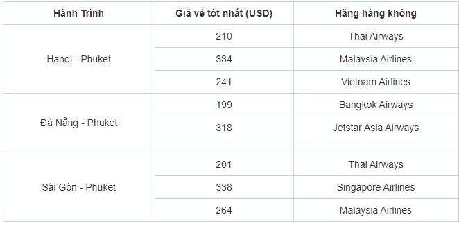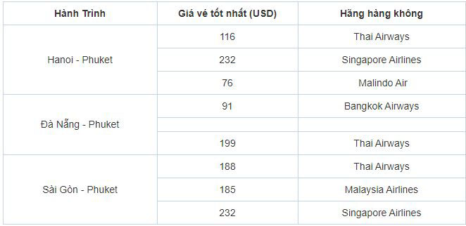 Hành trình một chiều từ Việt Nam đi Phuket (HKT):