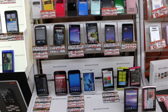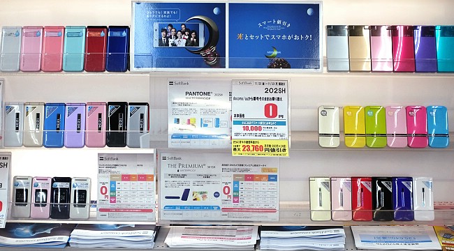 (Điện thoại đươc bày bán tại các cửa hàng Nhật Bản)