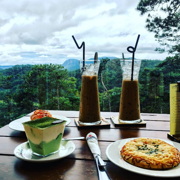 Quán được thiết kế sang trọng, xung quanh toàn kính. Điểm cộng của quán là view siêu đẹp, từ đây nhìn ngang sẽ thấy xe cộ đổ đèo, nhìn lên thấy lối lên cáp treo khá đẹp mắt và đặc biệt là nhìn thấy cả rừng thông. Địa chỉ: 31 Đường 3 Tháng 4