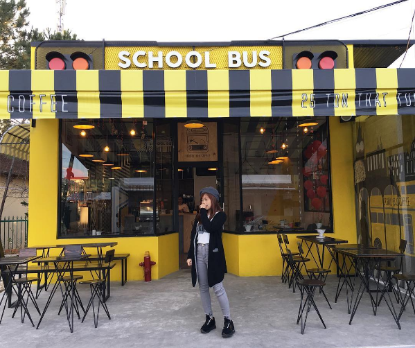 Quán nằm trong một con hẻm rất sâu, bên cạnh trường đại học Yersin. Quán nhỏ nhỏ, nhìn ở ngoài thì dễ thương, decor theo kiểu xe bus với tone vàng đen nổi bật, bên trong thiết kế họa tiết hiện đại. Địa chỉ: 25 Tôn Thất Tùng