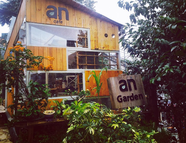 Nằm lửng bên con dốc Ba tháng Hai, với diện tích 200m² quán cà phê An là điểm dừng chân lý tưởng cho những ai yêu thích thiên nhiên và muốn tìm đến một nơi mang phong cách đậm chất mộc mạc của Đà Lạt. Bàn ghế của An đều được làm từ gỗ với thiết kế tinh tế làm cho không gian quán trở nên sang trọng hơn và ở mỗi chiếc bàn đều được bày trí những chậu cây nhỏ xinh như: rau cải, rau húng, bạc hà… Điều đặc biệt nhất ở cà phê An chính là bạn có thể thấy tất tần tật các loại rau, cải ở bất cứ đâu trong quán, từ khu vườn nhỏ bên ngoài cho đến kệ, bàn và những lối đi. Địa chỉ: 63Bis Đường 3 Tháng 2