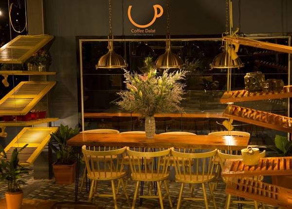 UP Coffee Dalat “hút hồn” du khách bởi không gian mang phong cách vừa “vintage” vừa hiện đại, tạo cảm giác cực kì ấm cúng. Quán được chia làm nhiều khu vực, từ trong nhà, sát cửa sổ, sân thượng, mà ngồi đâu cũng lại có cái thú vị riêng của nó. Thiết kế của UP Coffee Dalat cũng rất được đầu tư và sáng tạo. Bàn ghế trong nhà chủ yếu là bàn gỗ nhỏ đơn giản với màu nâu trầm, ở mỗi bàn còn được đặt một bình hoa nhỏ rất tinh tế. Điểm nhấn của UP Coffee Dalat là sở hữu view toàn thành phố Đà Lạt, với tầm nhìn ra: dãy núi Langbiang, núi Hòn Bồ, Dinh toàn quyền, Dinh 1,2,3, đồi Robin, tháp bưu điện, nhà thờ Con Gà, trường cao đẳng sư phạm, đồi Chủng viện… Địa chỉ: 6 Triệu Việt Vương