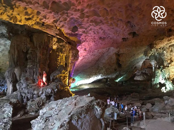 Du khách đến Hang Sửng Sốt – Đây là hang động đẹp nhất và rộng nhất trong quần thể hang động của Ha Long Bay (Được Hiệp hội các văn phòng và môi giới du lịch Czech bình chọn là 1 trong 10 hang động đẹp nhất thế giới . Ðường lên động Sửng Sốt luồn dưới những tán lá rừng, những bậc đá ghép cheo leo, du khách vừa có được cái thú của người leo núi, vừa có cái háo hức như đang đi lên trời vậy. Ðộng được chia làm hai ngăn chính, toàn bộ ngăn một như một nhà hát lớn rộng thênh thang. Trần hang được phủ bằng một lớp “thảm nhung” óng mượt, vô số những “chùm đèn treo” bằng nhũ đá rực sáng long lanh, những tượng đá, voi đá, hải cẩu, mâm xôi, hoa lá… tất cả dường như đang chuyển động trong một thế giới huyền ảo như thực như mơ.). Tham gia Tour Du Lịch Hạ Long 6 Tiếng Trên Du Thuyền tuyệt nhiên không thể bỏ lỡ nơi đây.