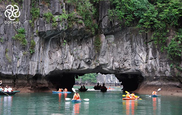 Ghé thăm Hang Luồn, hành khách có thể chèo kayak/ thuyền nan hoặc ngủ ở tàu ( Khách nào không sử dụng dịch vụ này có thể ở lại trên tàu)