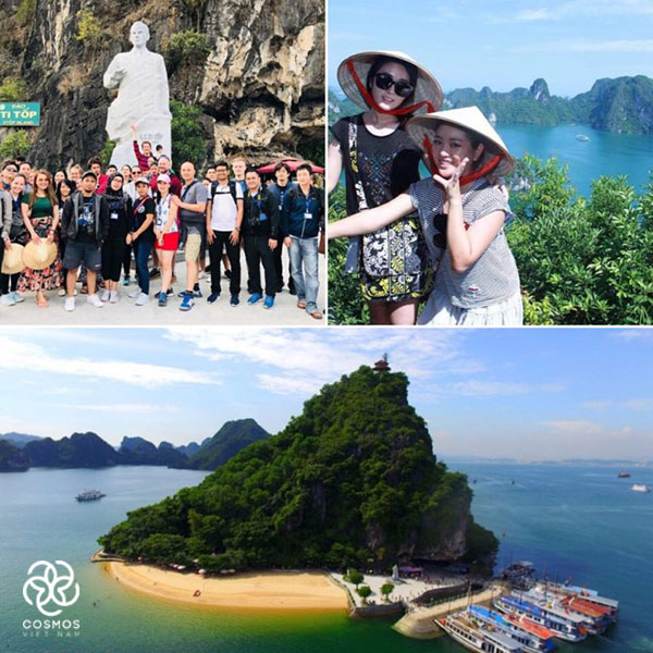 Đảo Titop chính là nơi bạn có thể bơi bên bãi cát trắng mịn hoặc bạn cũng có thể leo lên đỉnh Titop để ngắm toàn cảnh vịnh Halong với hàng ngàn mỏm núi đá vôi nhô lên từ mặt nước xanh biếc, thật sự rất giống như cảnh thần tiên trong cõi thực.