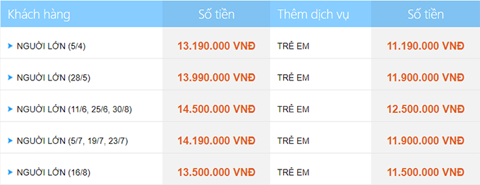 - Chi phí cá nhân, đồ uống, hành lý quá cước, tiền điện thoại, giặt là, VAT.