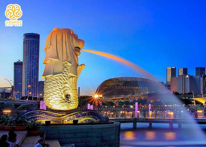 11h55: Tới sân bay Changi (Singapore), đoàn làm thủ tục nhập cảnh Singapore. Xe và HDV đón quý khách đi ăn trưa tại nhà hàng. Sau đó xe đưa quý khách đi thăm quan Toà nhà Quốc hội lịch sử, Toà án tối cao, Toà thị chính, Nhà hát Esplanade, Vịnh Marina Bay, Công viên sư tử biển Merlion Park...