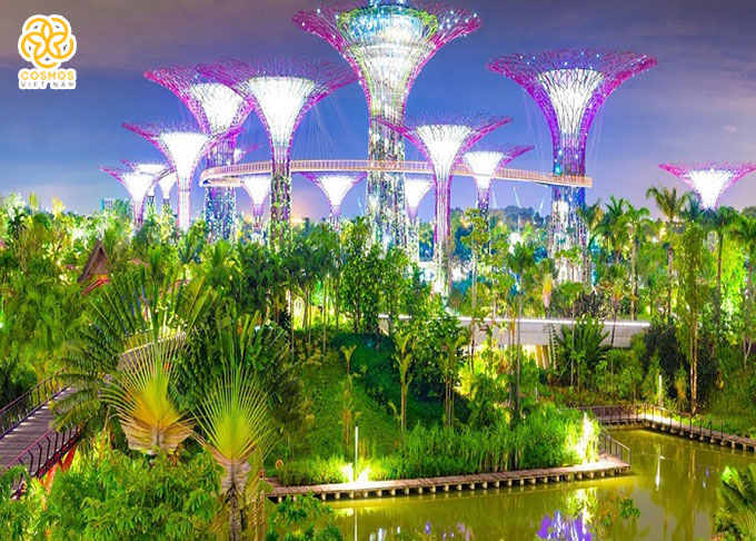 Sau bữa sáng, Đoàn bắt đầu: Khu vườn sinh thái đặc biệt mang tên Bay South Gardensby the Bay - với hệ thống “siêu cây” năng lượng mặt trời, dự án công viên sinh thái lớn nhất Singapore nhằm nâng cao chất lượng cuộc sống, giữ được màu xanh cho đô thị sầm uất. Toàn bộ dự án có tổng diện tích 101 ha, được chia làm 3 khu riêng biệt là: Bay South, Bay East và Bay Central (chỉ tham quan khu Bay South, không bao gồm vé tham quan các khu vườn trong nhà kính).