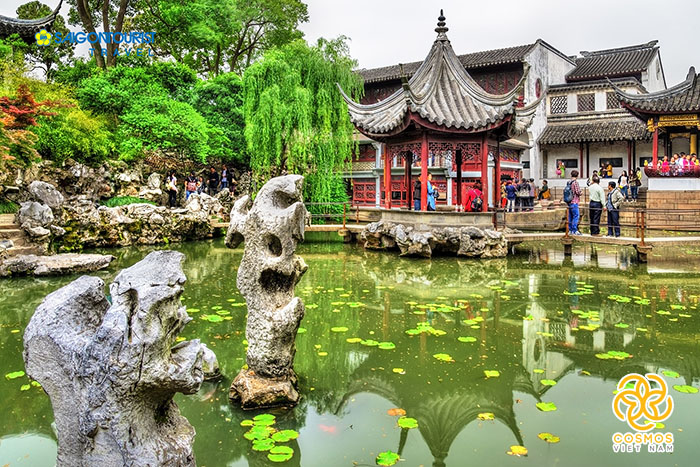 🔹 Chiều: Đoàn đi tham quan Sư tử lâm – một trong những lâm viên điển hình của vùng Giang Nam, nổi tiếng trong lịch sử Trung Hoa, tìm hiểu văn hóa tơ lụa, Hàn Sơn Tự - ngôi chùa cổ nằm bên bến Phong Kiều nổi tiếng được xây dựng cách đây hơn 1.500 năm, thăm quan Xưởng Tơ Lụa lớn nhất Tô Châu. Sau bữa tối, quý khách về khách sạn nhận phòng nghỉ ngơi và tự do dạo chơi, ngắm cảnh thành phố cổ Tô Châu. Nghỉ đêm ở Tô Châu.