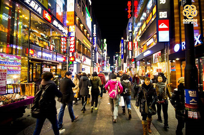 - Khu phố đi bộ Myeongdong đông đúc và nổi tiếng với nhiều nhãn hiệu thời trang Quốc Tế: Luis Vuiton, Chanel, Zara, H&M và các thương hiệu Hàn Quốc. Myeongdong hiện nay cũng nổi tiếng với phong cách ẩm thực đường phố độc đáo, hấp dẫn.