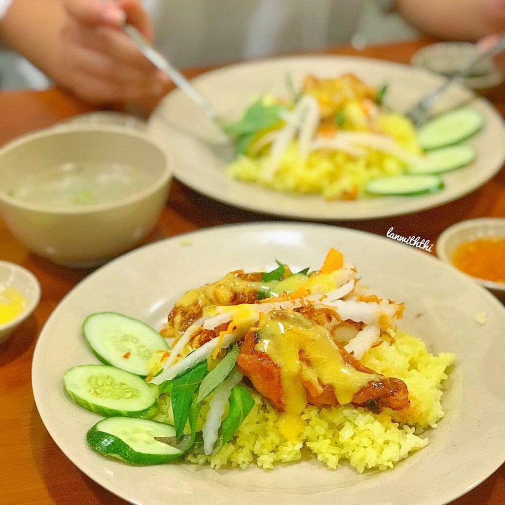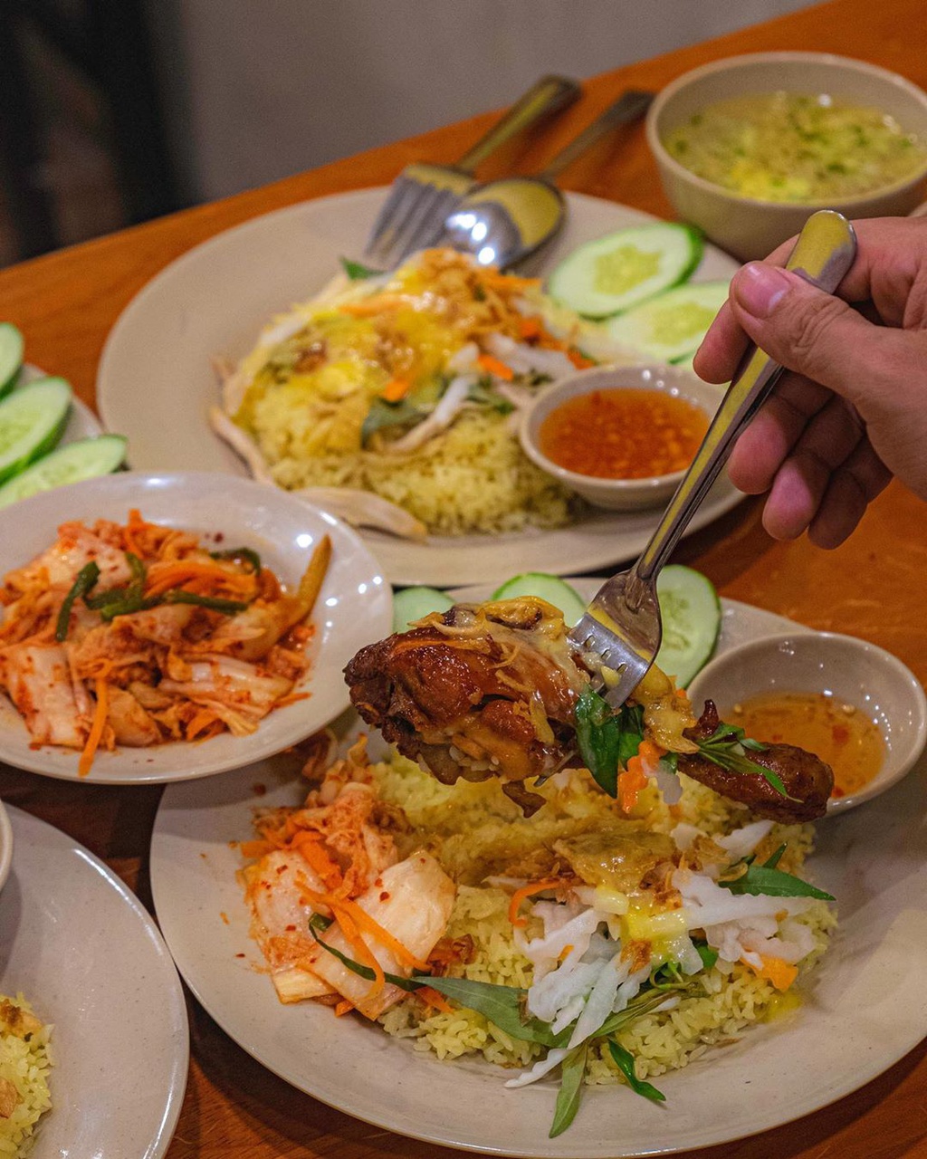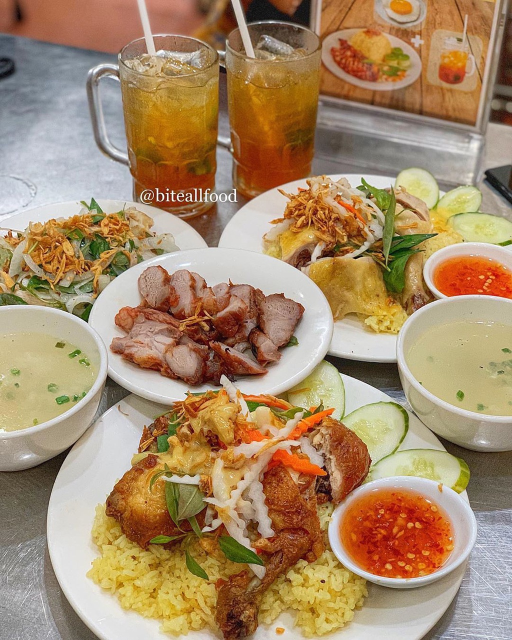 Dĩa cơm vàng óng, đầy đủ gỏi, đồ chua, nước mắm hòa quyện, hấp dẫn các thực khách. Tại TP.HCM, bạn có thể thưởng thức cơm gà từ nhiều vùng miền như Hội An, Nha Trang...