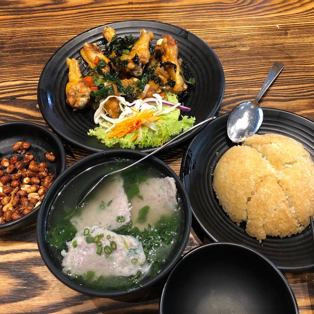 Ngoài món cơm gà luộc truyền thống, quán còn có các món cơm khác như đậu hũ Tapo, trứng chưng, thịt kho trứng nước dừa, tôm rim... Giá: 50.000-80.000 đồng.