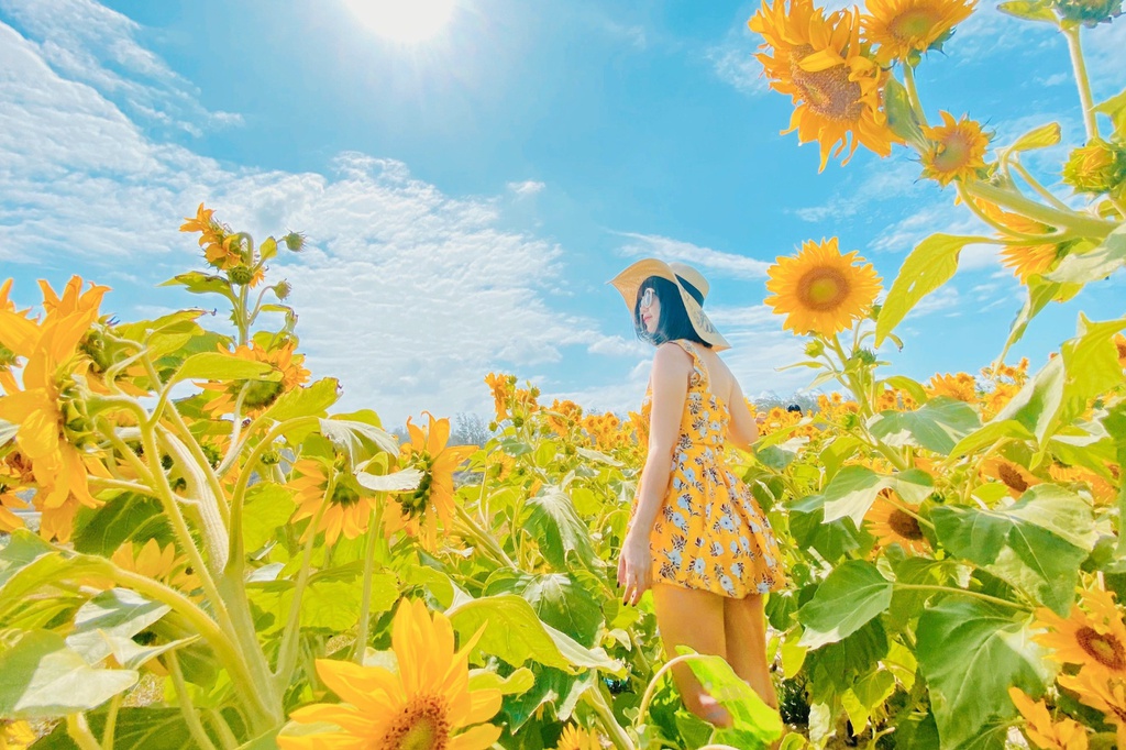 Nói về hai điểm đến này, nhiều người sẽ nghĩ đến ngay những tọa độ quen thuộc như Gành Đá Đĩa, Kỳ Co - Eo Gió... Tuy nhiên, nếu muốn tạo điểm nhấn riêng, bạn có thể tìm đến những địa điểm "lạ mà quen". Vườn hướng dương này nằm ngay trong khu du lịch Bãi Xép (Tuy An, Phú Yên). Dù vậy, du khách phải chờ vận may để chụp được hoa nở rộ. Hướng dương được trồng và cắt liên tục nên về cơ bản mùa nào cũng có hoa nhưng chụp ảnh còn do may mắn.