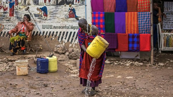 Một cô gái Maasai ra phố lấy nước sạch
