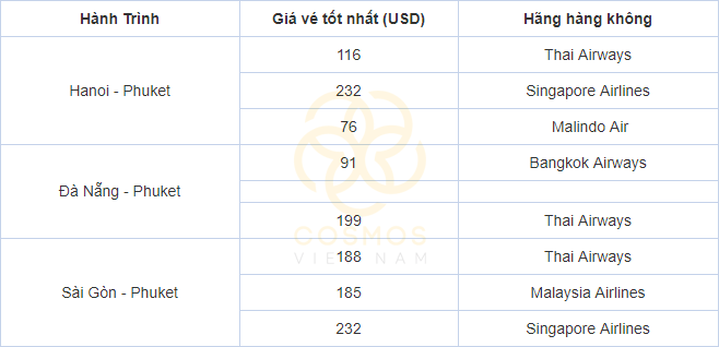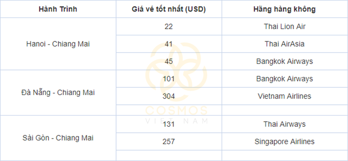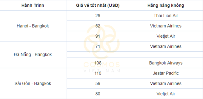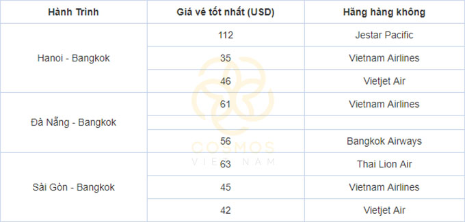 3. Thông tin giá vé máy bay đi Thái Lan tiết kiệm cùng Cosmos Travel