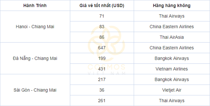 Hành trình một chiều từ Việt Nam đi Chiang Mai(CNX):
